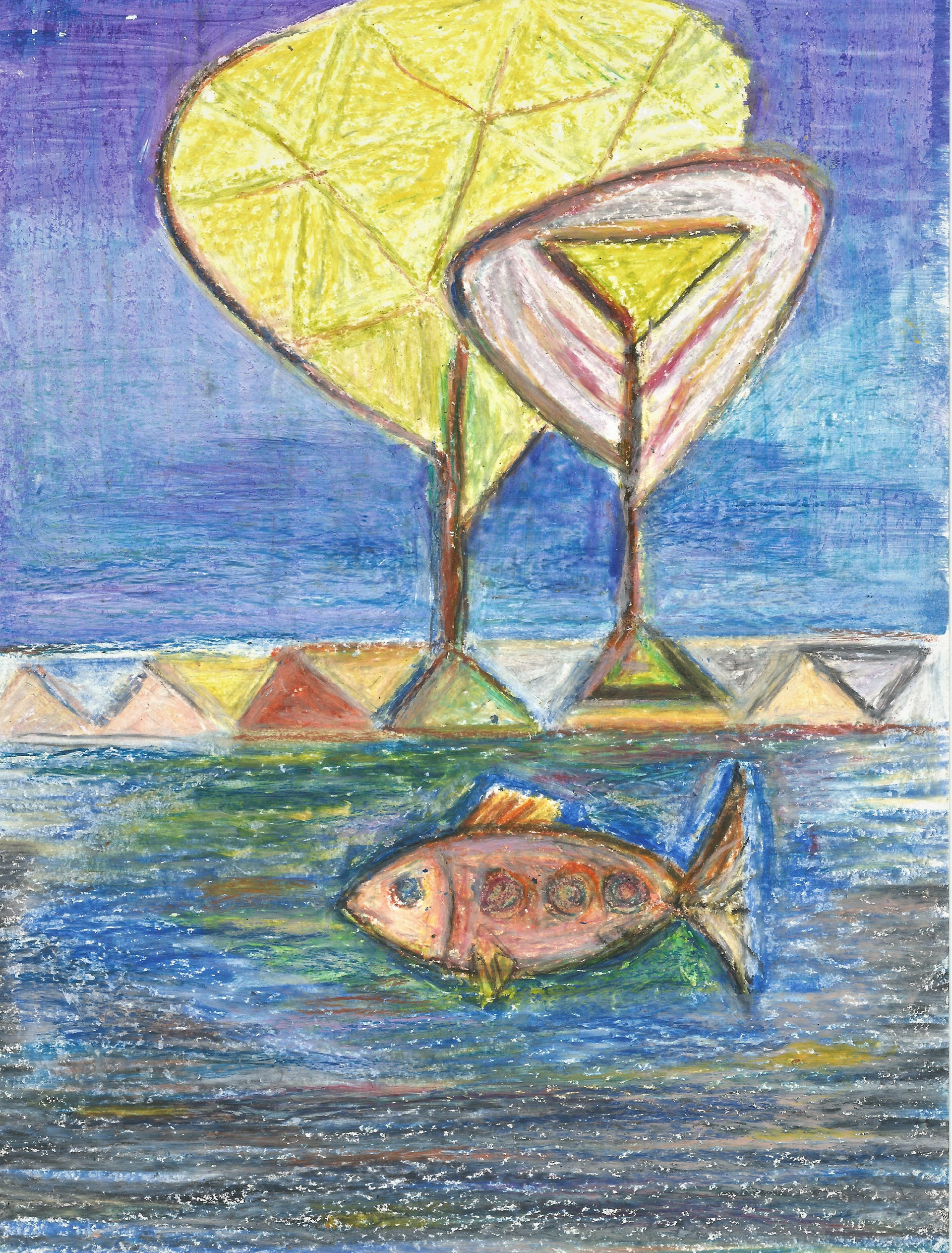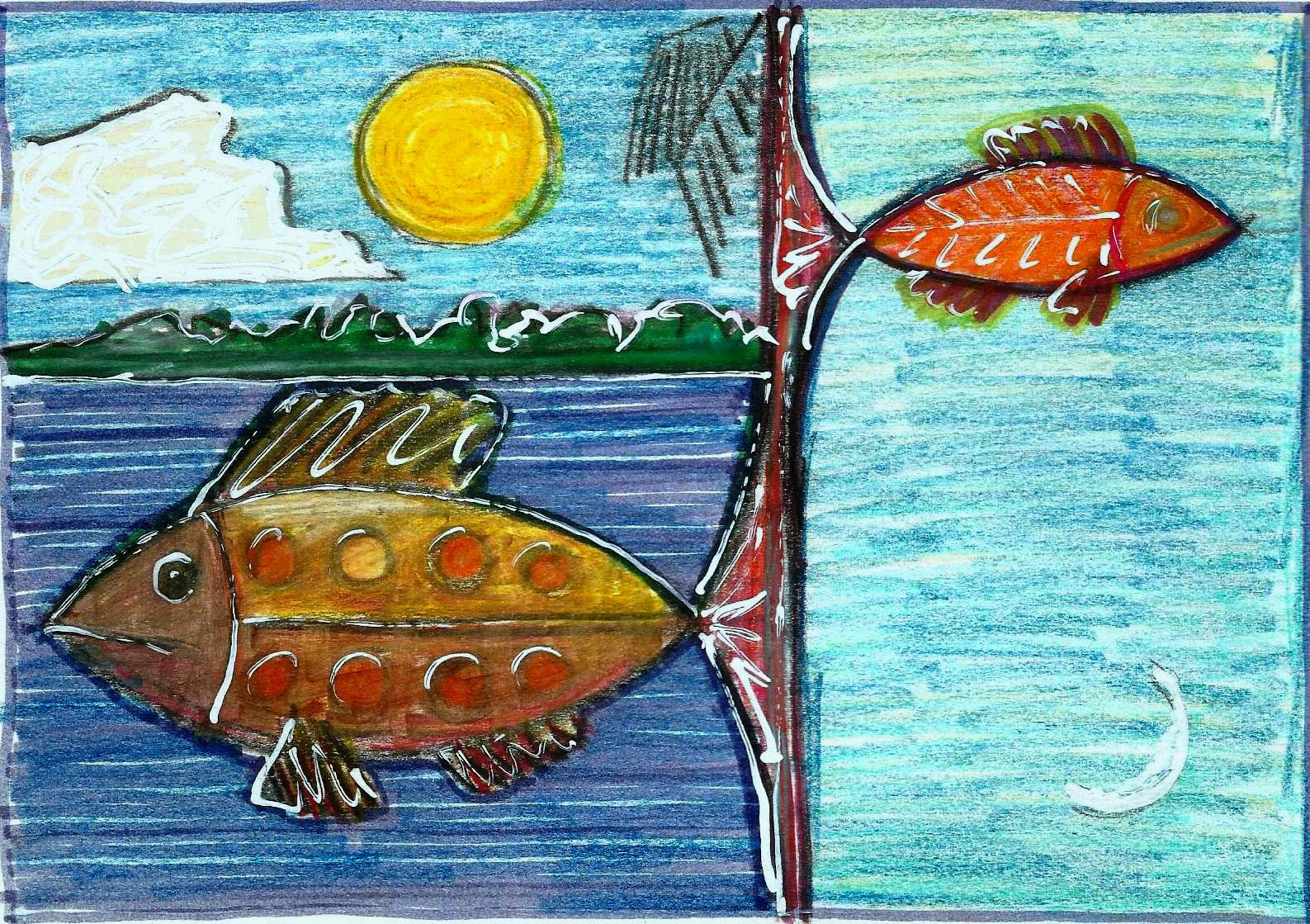 figuras de peixes, sóis e luas entre outras imagens que se definem quase que exclusivamente